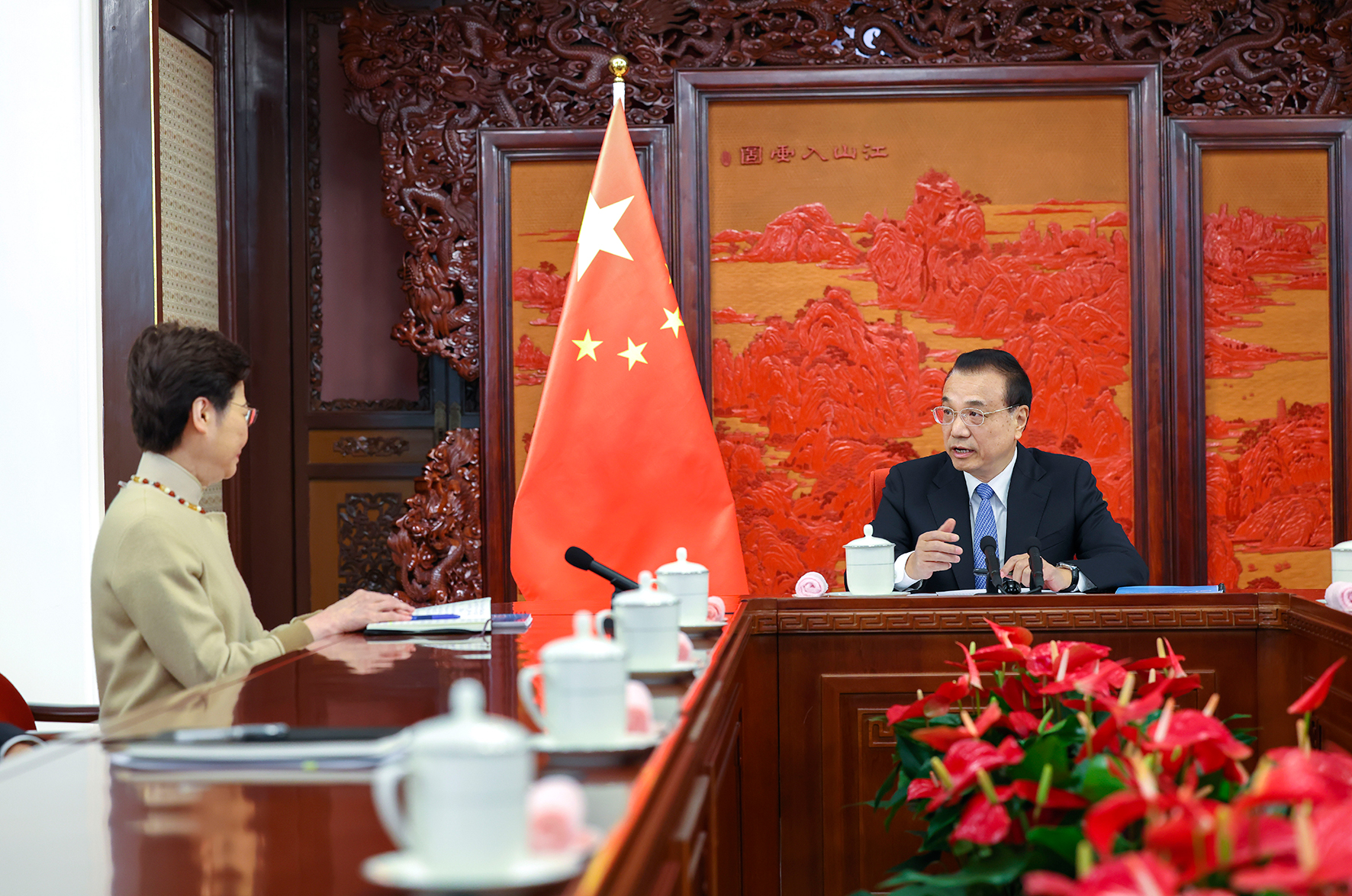 李克強指,北京政府對林鄭月娥和特區政府充分肯定,將繼續全面貫徹一國兩制、港人治港、高度自治,完善特區與憲法和基本法相關的制度機制,支持香港成為國際金融中心、貿易中心、航運中心,希望香港可以更對接國家的發展戰略,為香港的發展提供更廣闊空間,亦希望特區政府繼續防控疫情、促進經濟恢復、改善民生。