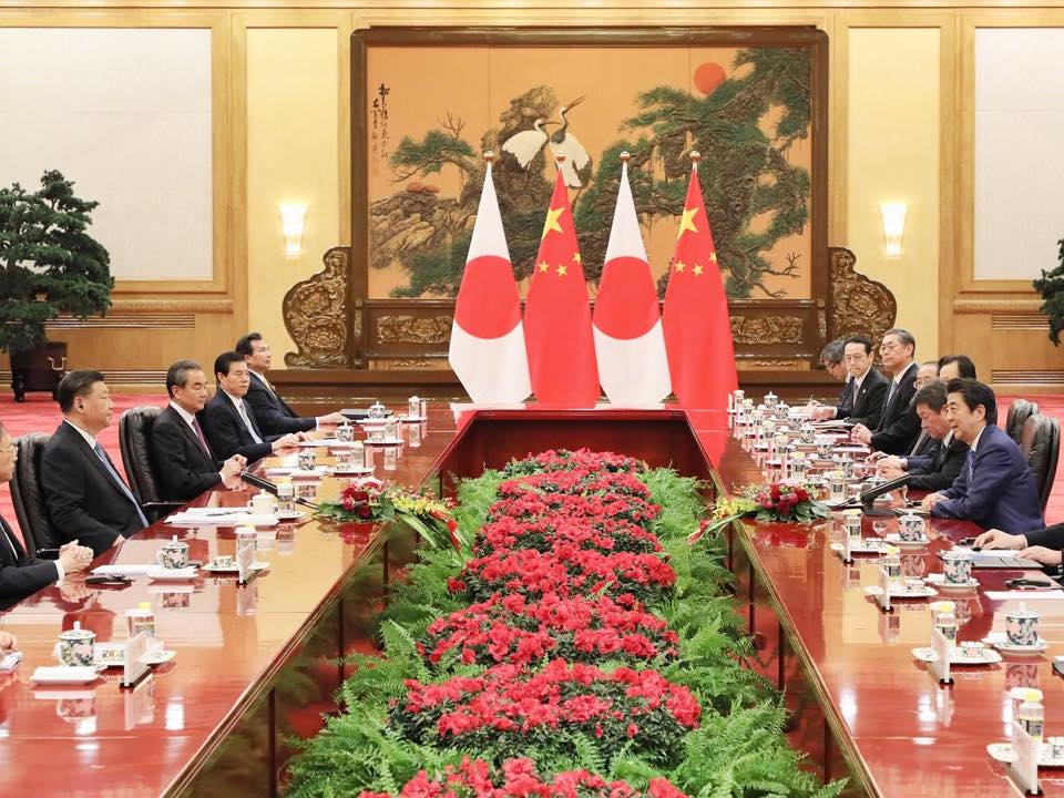 習近平在會談中表示,願同安倍保持密切溝通,推動中日關係再上新台階。安倍強調,為了構建符合日中新時代的關係,將合作推進準備工作。對地區和平、穩定和繁榮共同有著巨大責任的日中兩國將切實承擔起責任來。