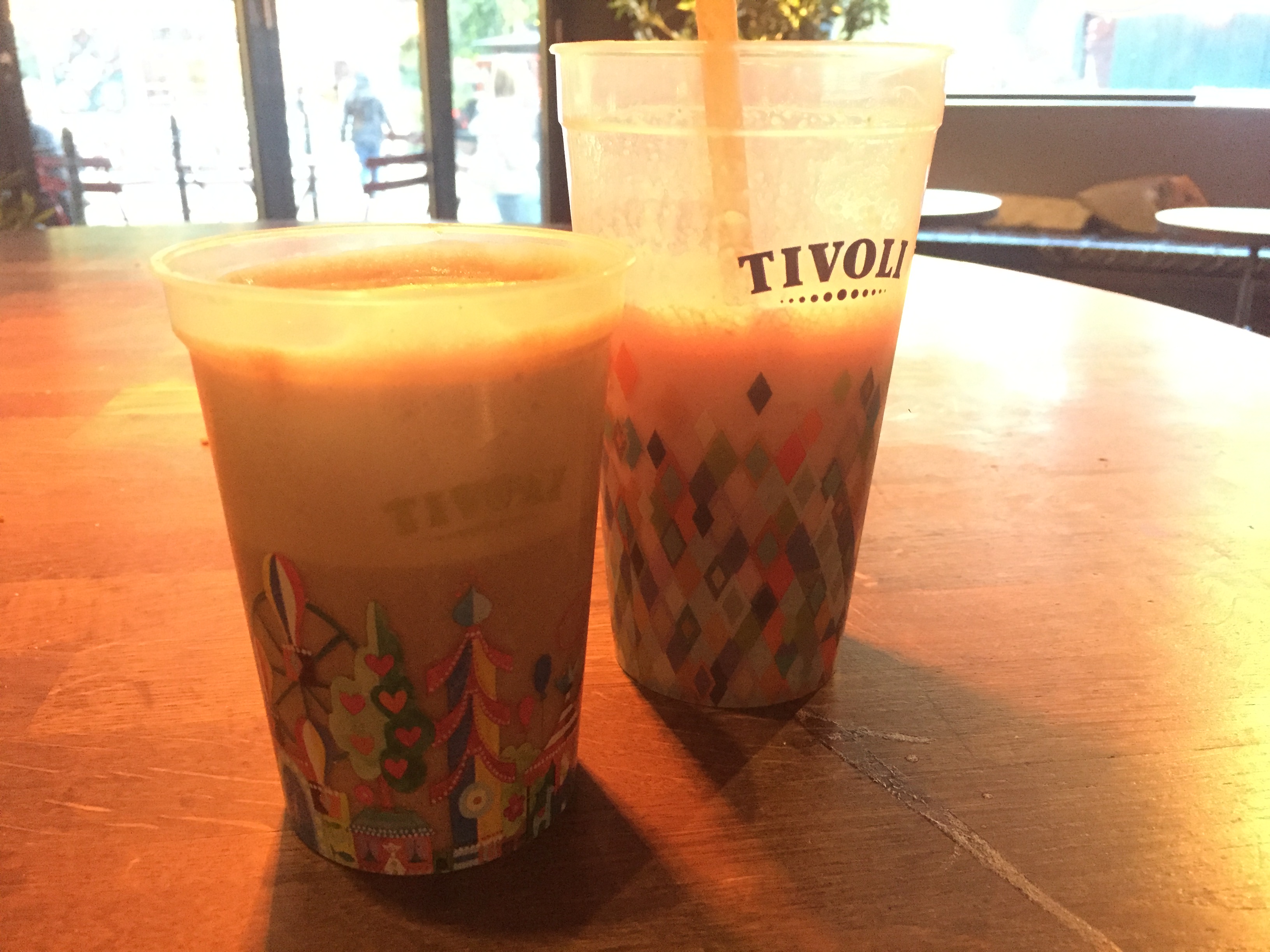 去過鬼屋後外面開始入黑,氣溫也開始下降,唯有到咖啡店買飲品暖暖身體。我們到了Joe and the Juice,飲品偏貴(和外面的分店一樣價錢,只不過這家是偏貴的咖啡店),但飲品是裝在Tivoli Gardens版本的膠杯裡。膠杯是可重用物料比較厚的,可以帶走做紀念品,也可以放入店外的回收機,就可獲退回DKK5。我們只回收了一個,另外那個就帶回家做紀念品了。
