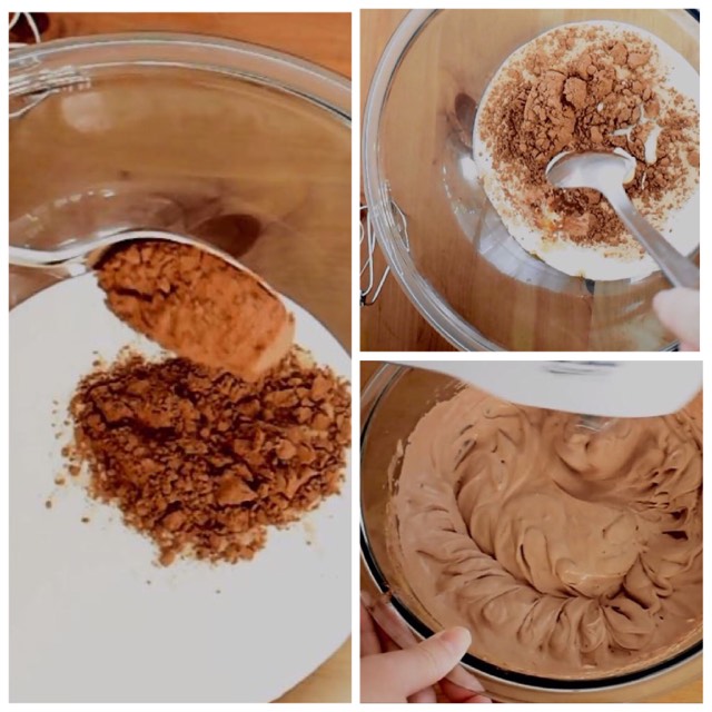 (4)預備朱古力忌廉:將所有材料打發成型(軟雪糕狀)就可以,放入雪櫃備用。