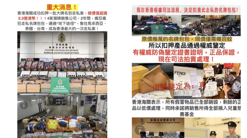海關表示,有關社交平台專頁發出虛假訊息企圖誤導消費者,並有侵犯知識產權之嫌,有可能觸犯本港《商品說明條例》及《版權條例》。