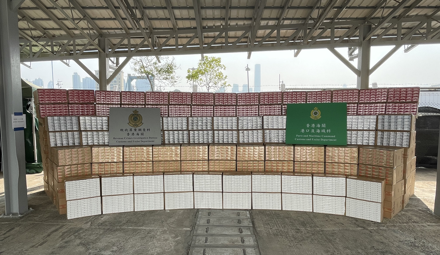 海關當日早上透過風險管理、情報分析和數據分析,在油麻地錨地一帶海面截查一艘可疑躉船。經檢查後,海關人員於船上3個40呎貨櫃內檢獲該批懷疑私煙。